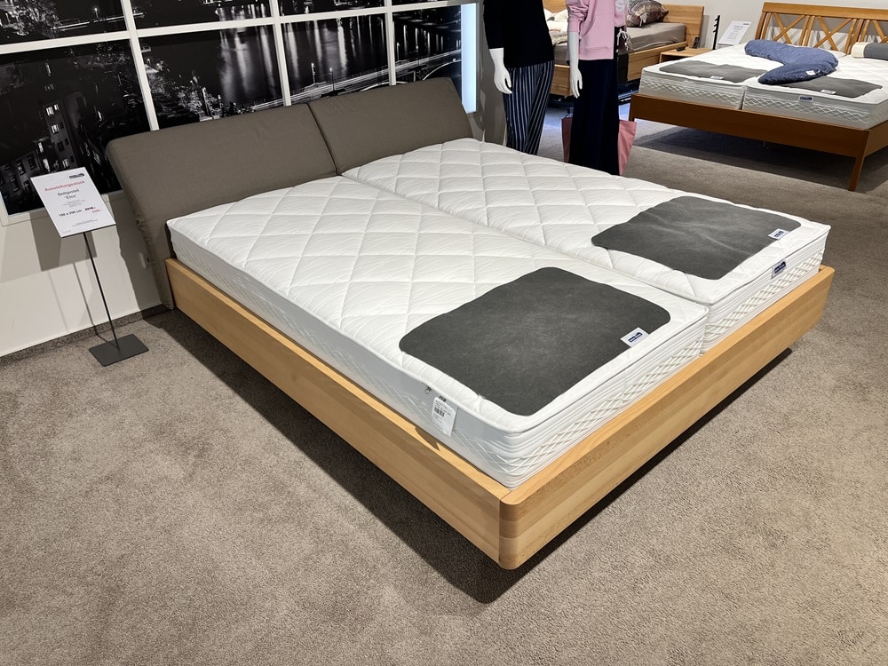 Größe: 180/200 cm | Material: Bettrahmen aus Buche Natur, Kopfteil aus Stoff  | Rahmenhöhe: 43 cm | Kopfteilhöhe: 93 cm | Kopfteil beweglich  | Firma: Traumwerk